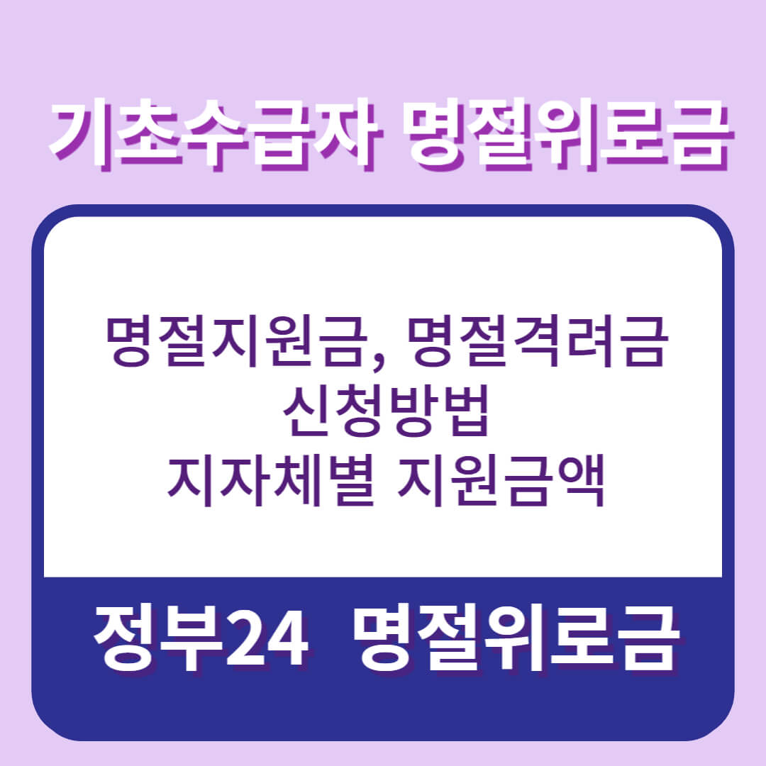 2024년 우리나라 민족 대명절인 설날이 다가오고 있습니다. 해마다 정부와 지방자치단체에서는 명절이 다가오면, 모두가 소외되지 않고 즐거운 명절이 되도록 지원하는 사업이 있는데 이것이 "명절 위로금"입니다. 기초수급자의 명절 위로금과 지자체별 지원금액과 신청방법을 알아보려고 합니다.