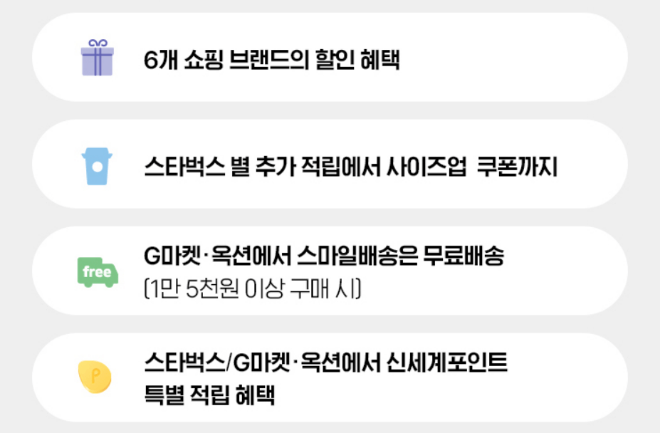 1) 다양한 신세계 계열사에서 할인 및 포인트 적립 혜택